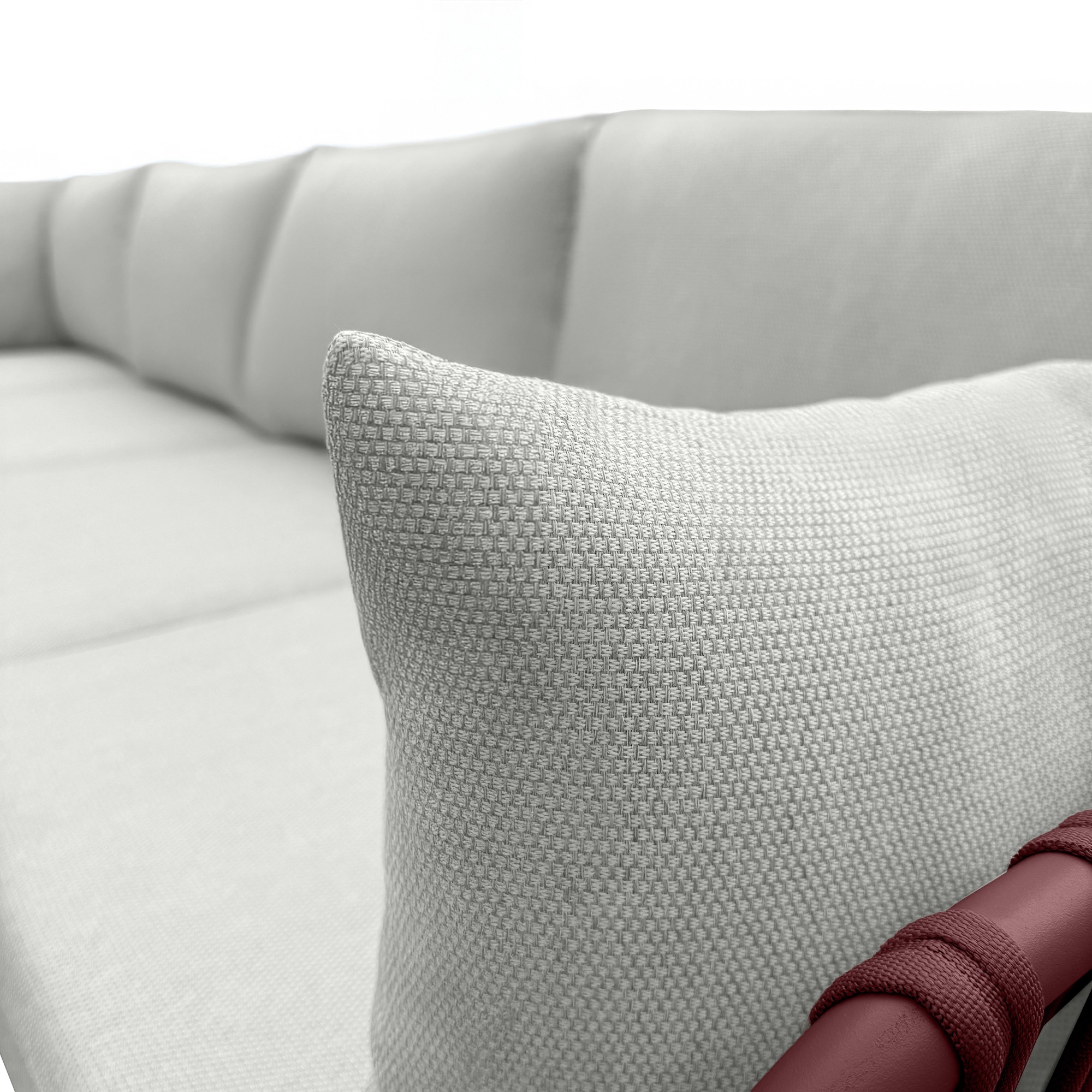 ✔ Plecionka z trwałego sznurka na oparciach i podłokietnikach – elegancki detal podkreślający nowoczesny charakter mebli