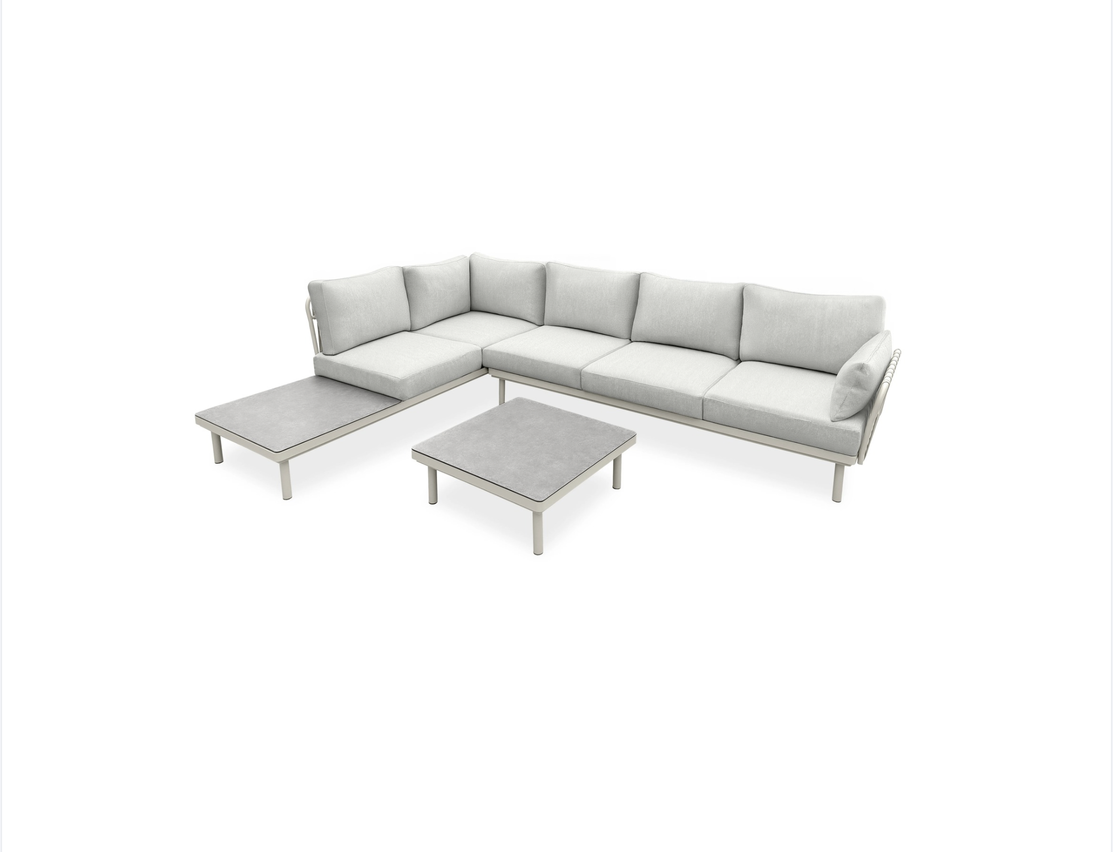 Cały komplet tworzy wyjątkowo funkcjonalną przestrzeń wypoczynkową, idealną do relaksu, spotkań z rodziną i spędzania czasu na świeżym powietrzu.